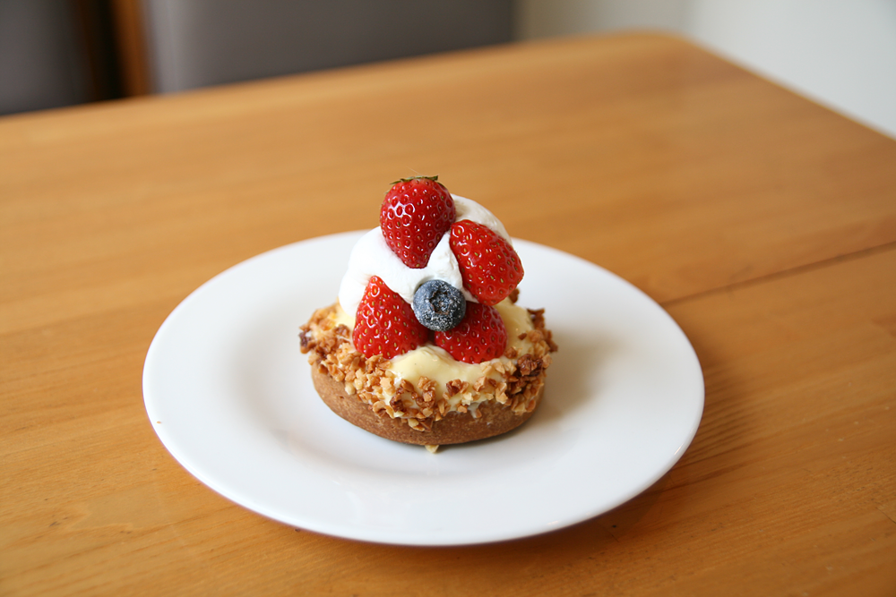 しばらくの間お休みしていたフルーツのタルトです。 やっぱりフルーツのケーキはかわいいな。