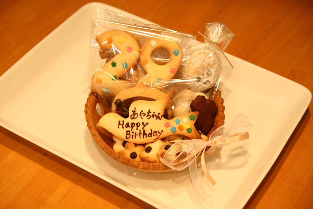 ケーキの代わりにプレゼントするメッセージつきのクッキー詰め合わせです。