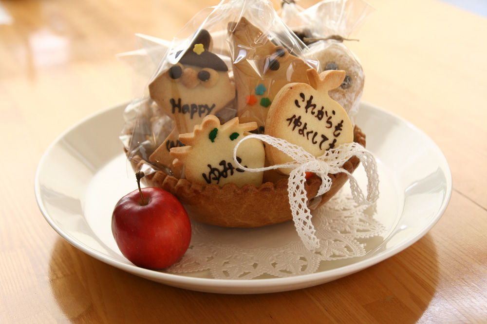 2009/10/26 お手紙クッキー りんご BirthdayとWeddingのプレゼントでお手紙クッキーを作りました。 クッキーにりんごをチョイスしてくださったので 今旬な、ひめりんごを添えました。 Tweet