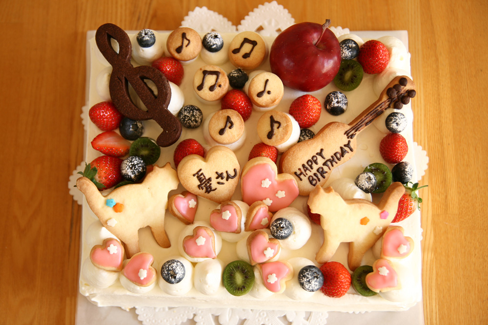 音楽、ギター、ねこが大好きな方に贈るケーキです。