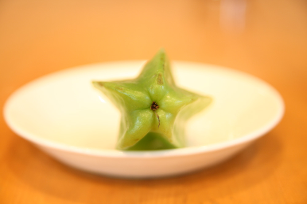 30歳を祝うケーキです。 右上にのっている、星形のフルーツはスターフルーツです。 こんな形のフルーツで、フルーツ屋さんおすすめのフルーツです。