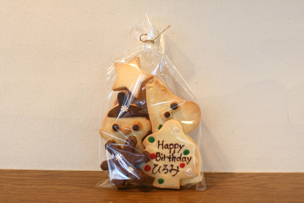 クッキーにメッセージをかいて、袋に詰め合わせしました。