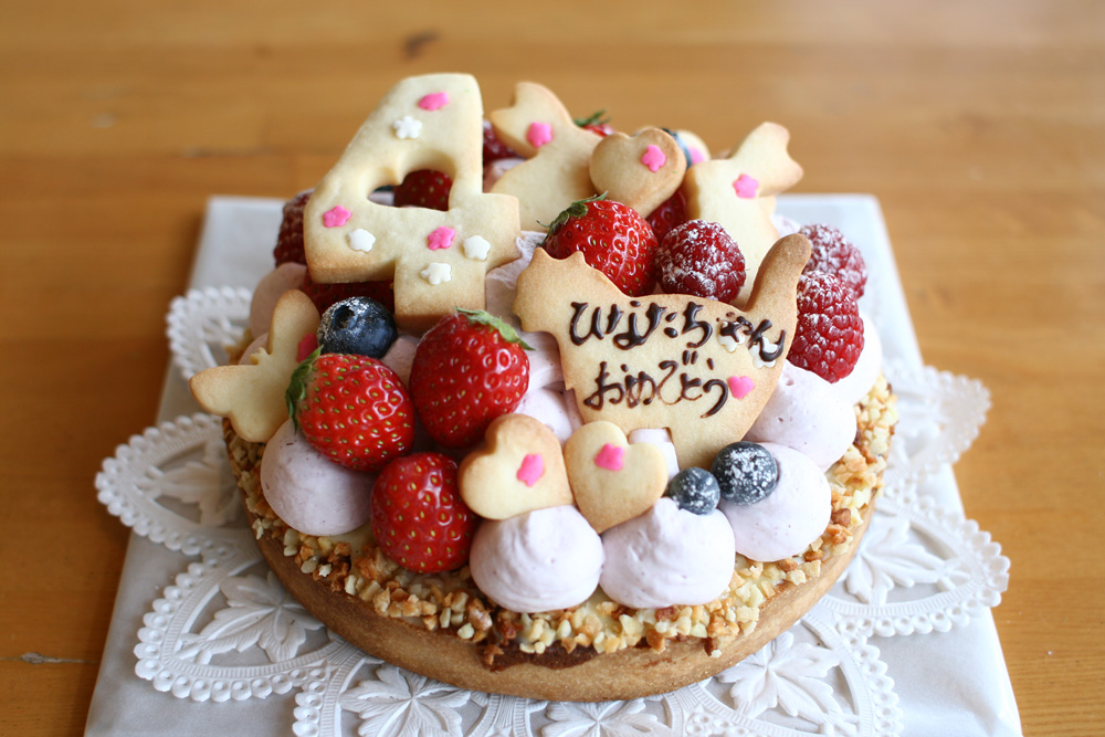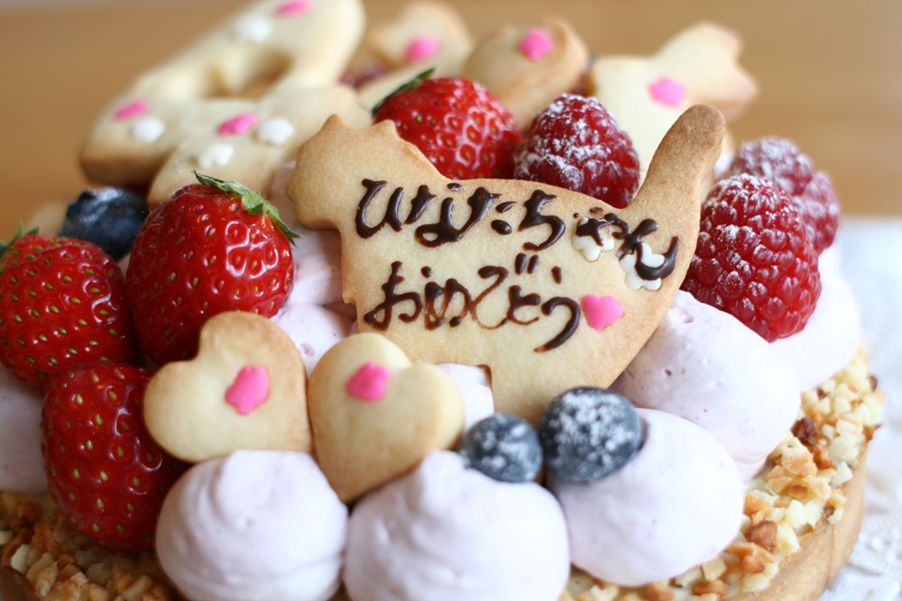 ピンクのケーキが食べたいとのことで、ピンクのケーキを作りました。 ハート、うさぎ、ねことかわいいものが大好きな4歳になる女の子のケーキです。
