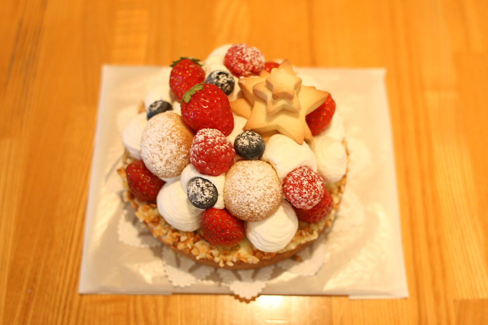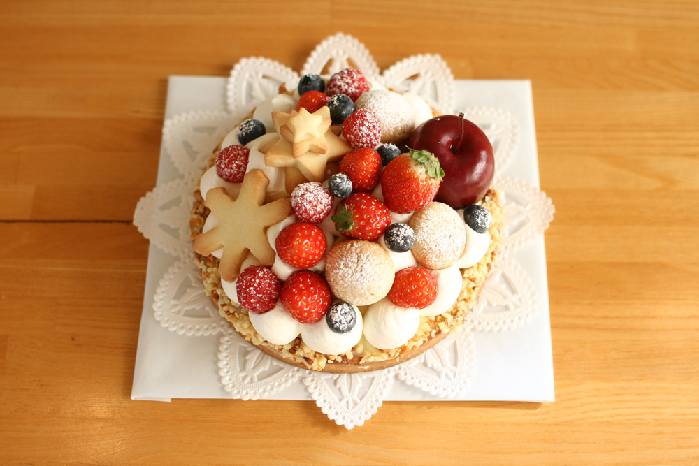 一足先にクリスマスケーキを作りました。 17センチのタルトです。 これは、12センチの小さなサイズのクリスマスケーキです。