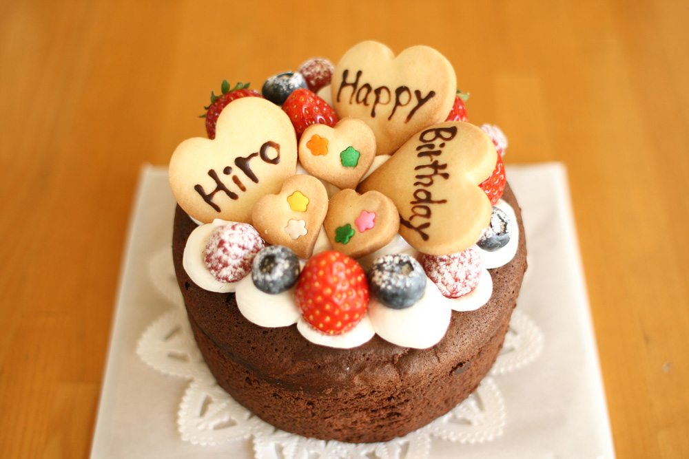 結婚して初めて迎えるだんなさんのお誕生日に贈るケーキです。 チョコ大好きという旦那さんのためにチョコケーキをベースにしました。