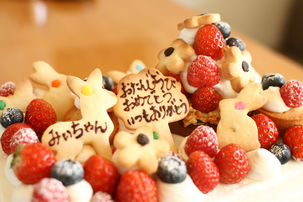 2010/1/18 バースデーケーキ お母さんに感謝の気持ちをたくさん伝えたいということで、たくさんのフルーツでデコレーションして 登山がすきなお母さんということだったので、 右端に小さなタルトをのせて山っぽくしてみました。 Tweet
