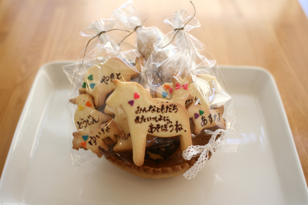 2010/3/24 お手紙クッキー パパのお仕事で、東京にいってしまうお友達に贈るお手紙クッキーです。 たくさんのお友達からのプレゼントです。 シブルにもランチを食べに来てくれて、うれしかったです。 Tweet