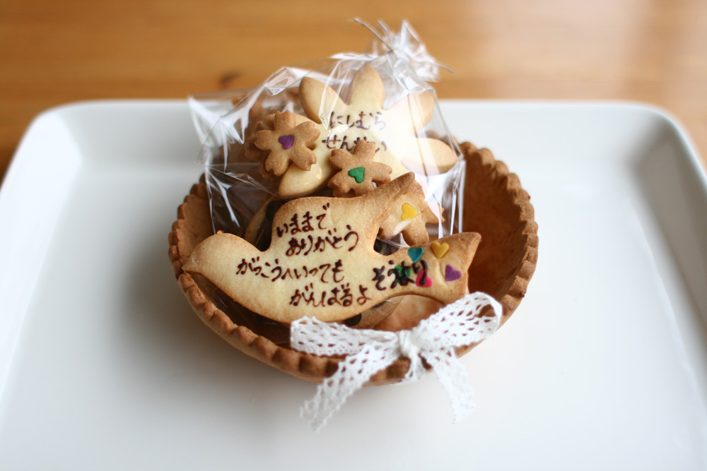 卒園式で、お世話になった先生に贈るお手紙クッキーです。