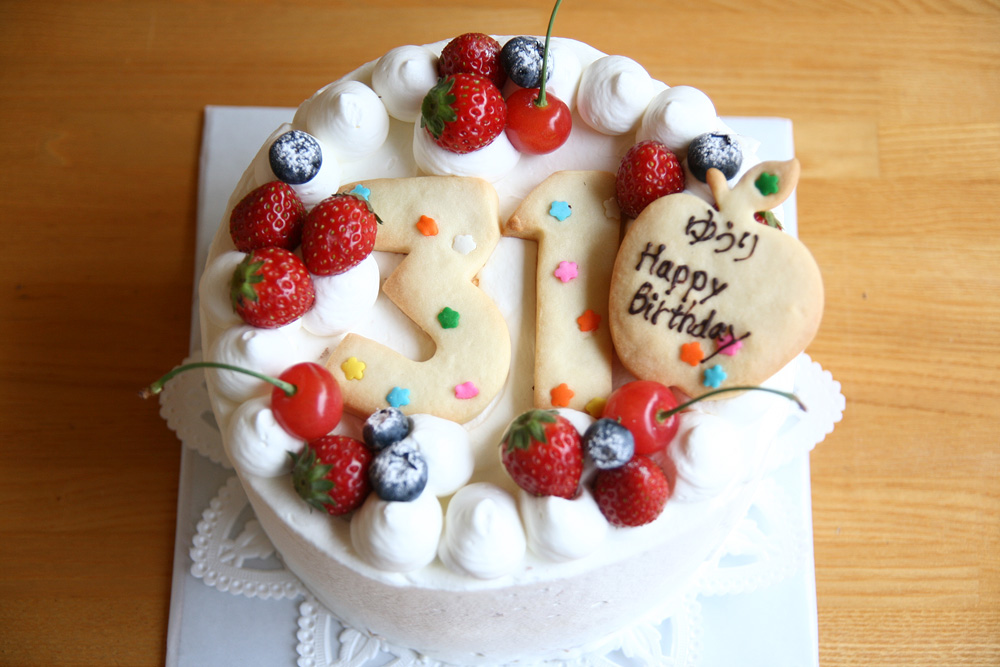 シフォンケーキをベースにした、31歳になる女の子のバースデーケーキです。