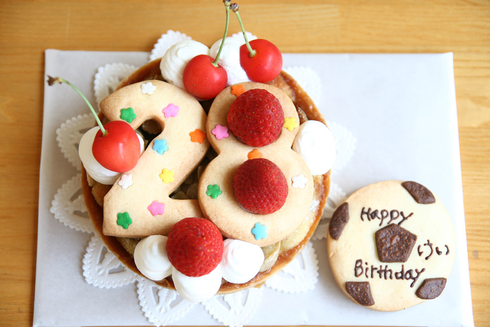 12センチのバナナのタルトをベースにしたバースデーケーキです。