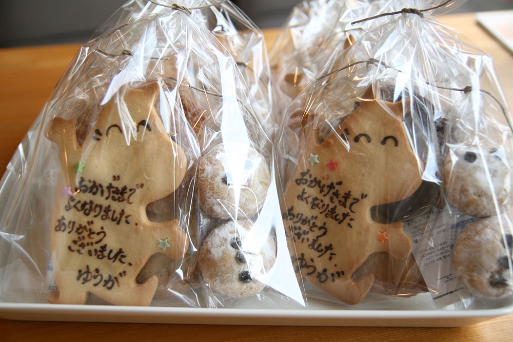 このクッキーの型が元気はつらつな感じだったのでこのクッキーの型にメッセージを書きました。