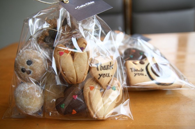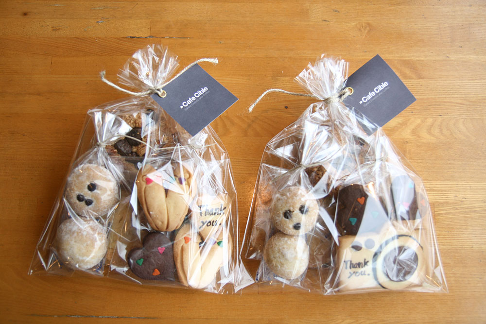 左のはヒールのクッキー、右のはカメラのクッキーが入っています。