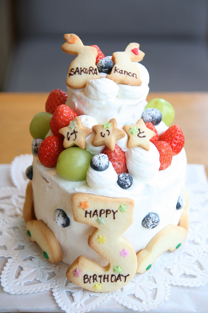 小さな2段のケーキです。 車好きの男の子にプレゼントするケーキです。 赤ちゃん産まれていてびっくりしました。 また、あそびにきてくださいね。