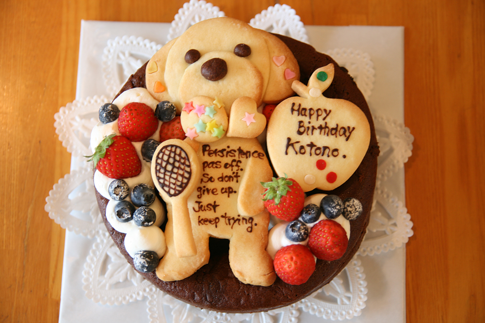 お父さんからの娘さんにプレゼントするバースデーケーキです。 小さな時から大切にしているくまのぬいぐるみをクッキーでお作りしました。