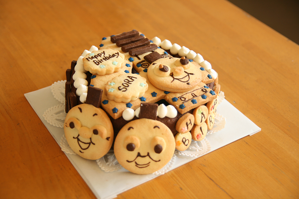 フルーツが毎年4日にはなくて、でも空君大好きなクッキーでデコレーションしました。