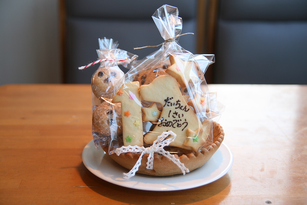 1歳の犬が好きというだいちくんに贈るお誕生日のお手紙クッキーです。 うちの娘よりもとっても上手に歩いてました。 ママもお仕事がんばってね。