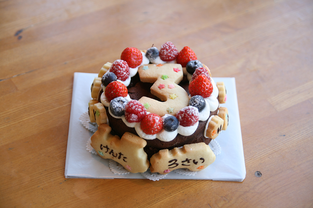3さいになるけんちゃんと1さいになるさくちゃんのバースデーケーキです。 兄弟2人のお誕生日が近いため一人ずつ小さいケーキを一つずつ作りました。