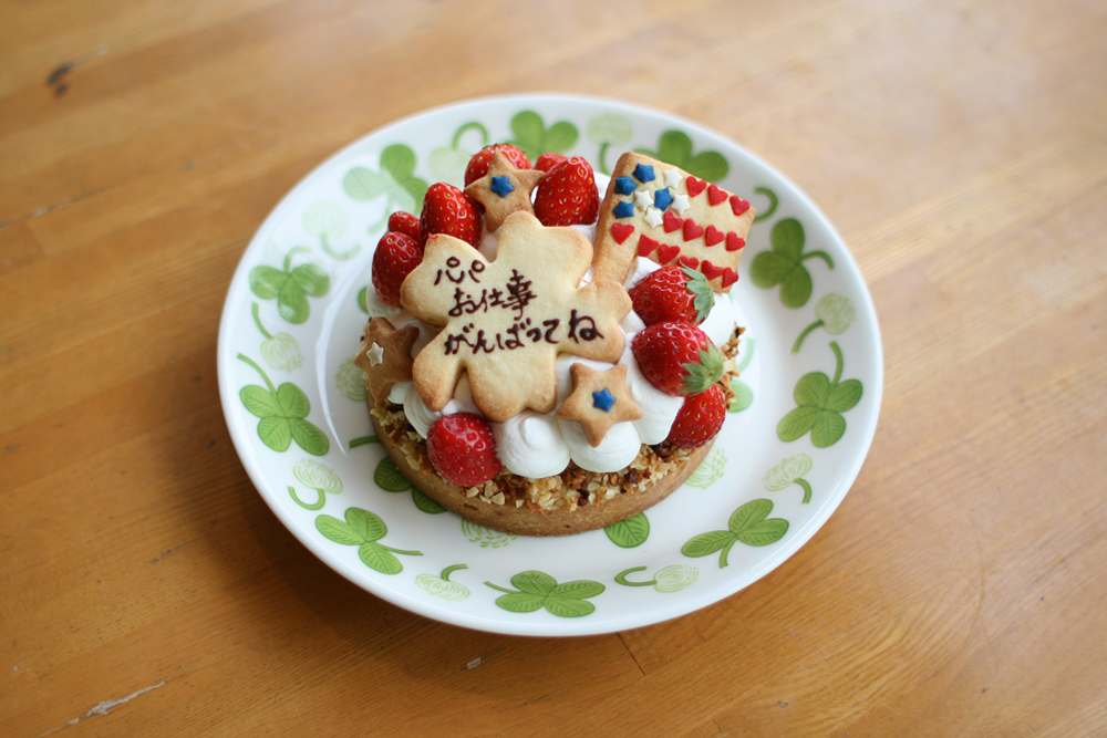 転勤先がアメリカに決まったパパに贈るケーキです。
