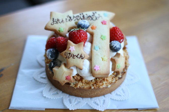 パパとママと3人で食べる12センチのバースデーケーキです。