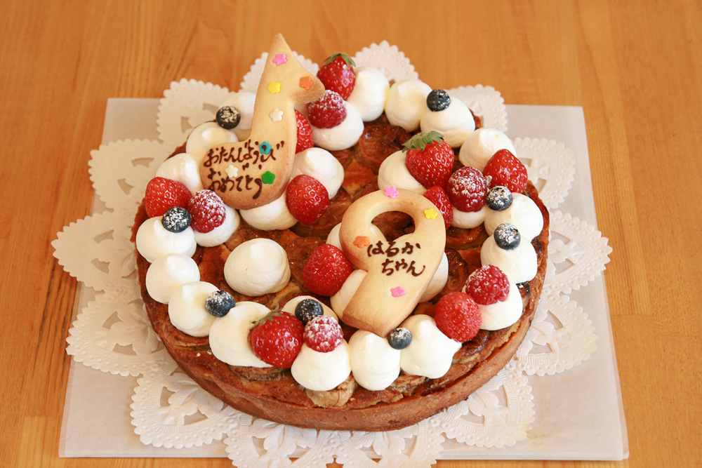 21センチのバナナのタルトのバースデーケーキです。