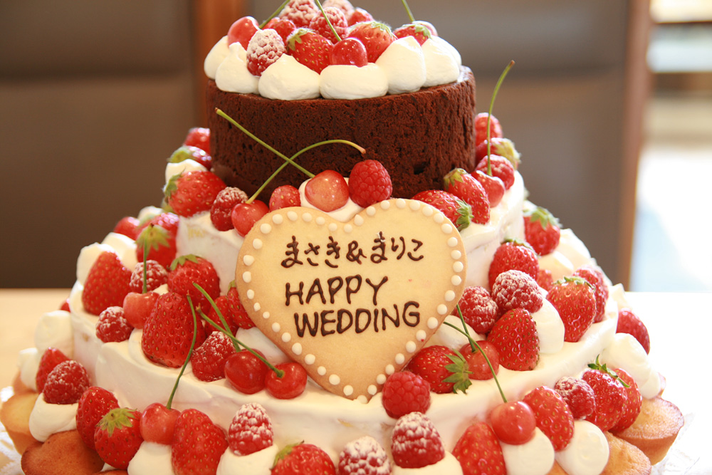 一番下は、タルトになっていてスポンジケーキで、一番上はチョコレートケーキです。