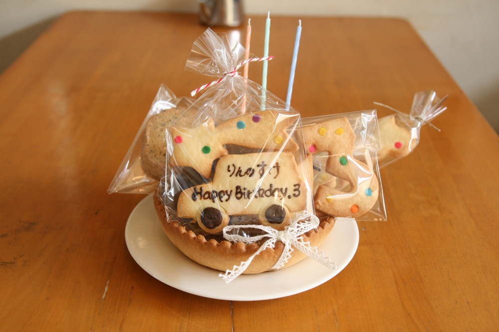 ケーキよりクッキーが好きとのことで、お手紙クッキーで3歳のお誕生日ケーキです。 ロウソクも立てました。