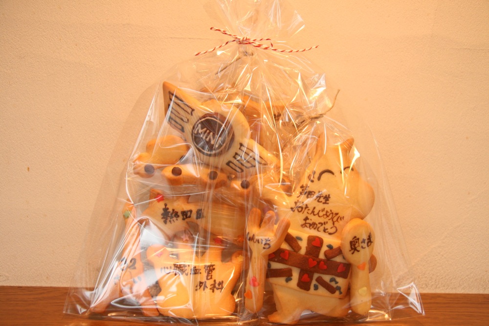 子供が産まれて、ミニクーパーに乗れなくなってしまった先生に贈るクッキーです。