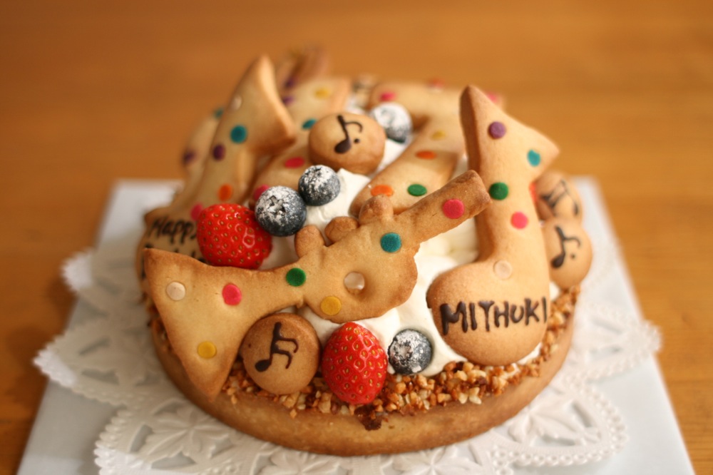 吹奏楽でトランペットをやっている娘さんに贈るケーキです。