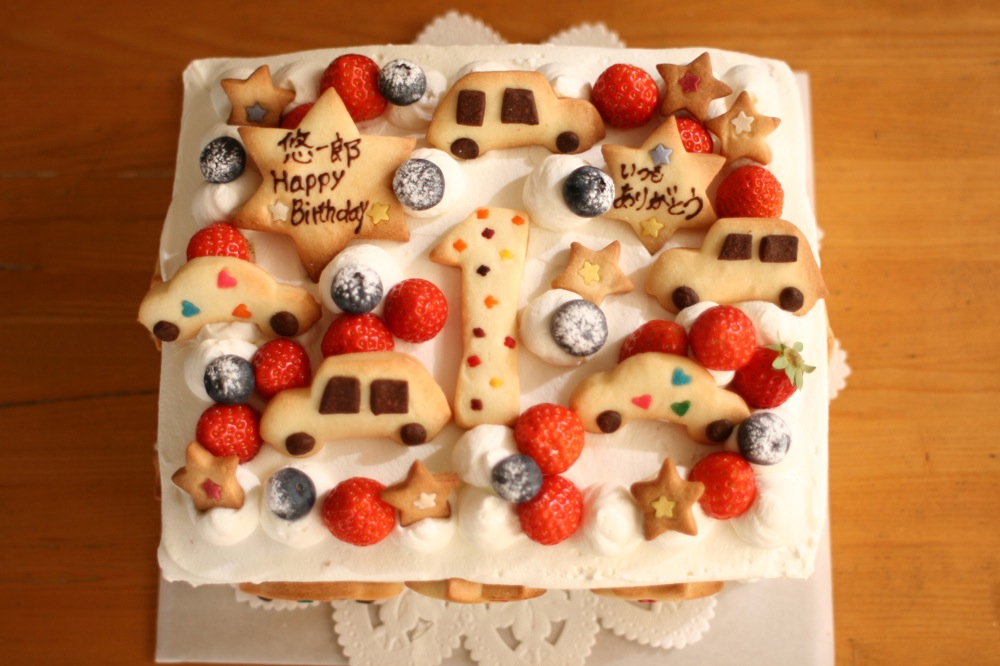 車が大好きな1歳の男の子に贈るケーキです。