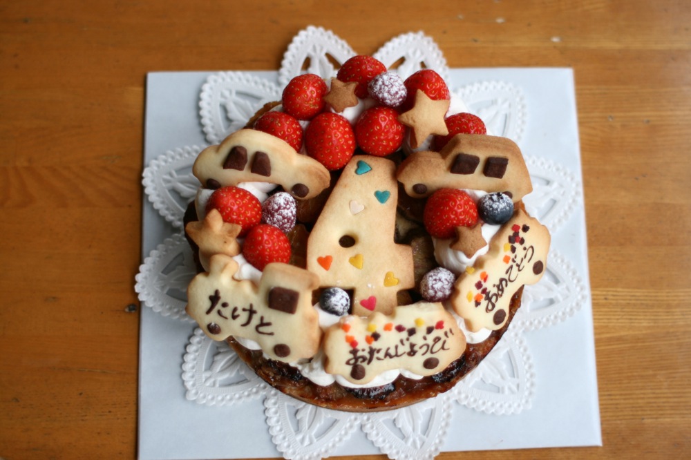 バナナのタルトがベースのバースデーケーキです。
