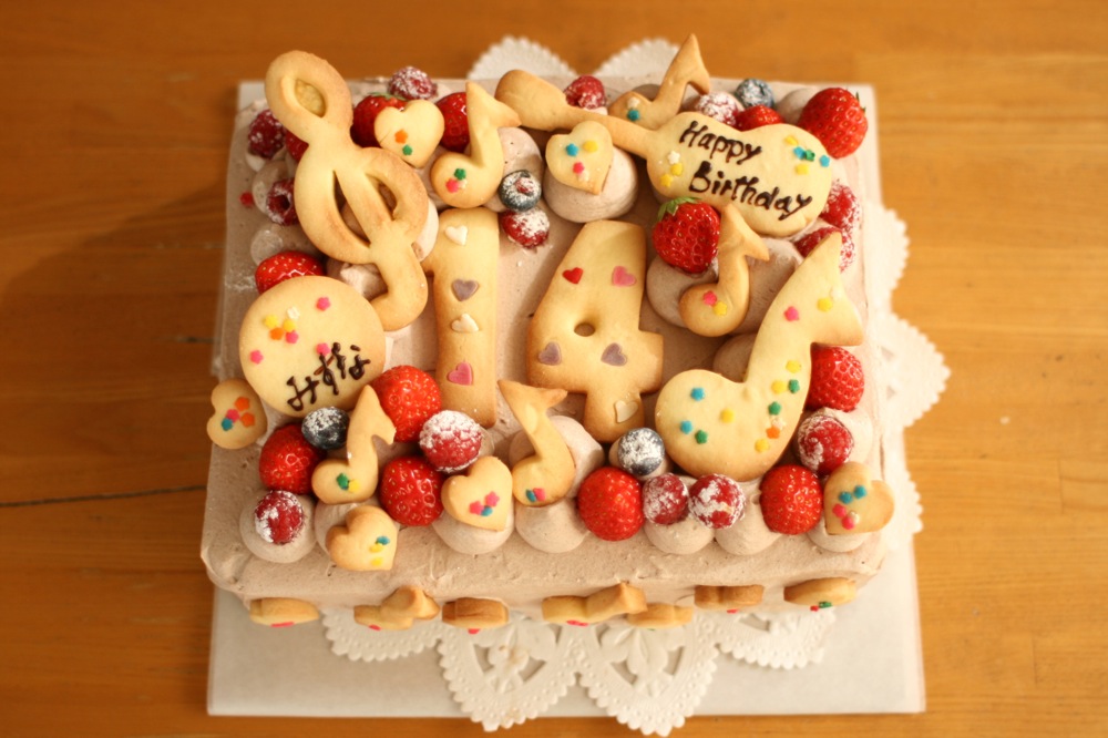 大きなスポンジケーキのバースデーケーキ