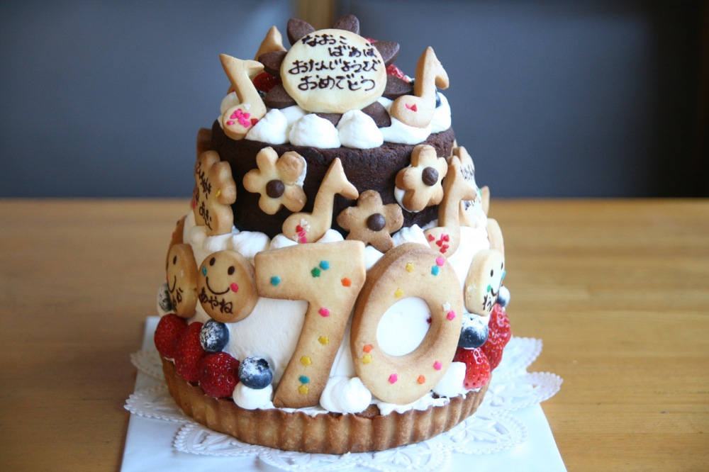 2015/4/21 2段のバースデーケーキ 家族のみんなに愛されているおばあちゃんに贈るというケーキです。 子供さん、お孫さんの名前を入れました。 歌とお花が大好きというおばあちゃんにプレゼント。 Tweet