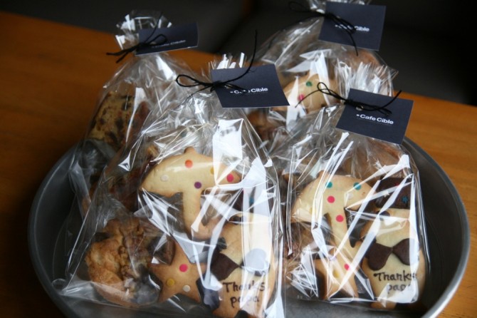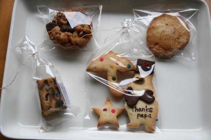 中身は、メッセージクッキー、パパにおひげと蝶ネクタイ。