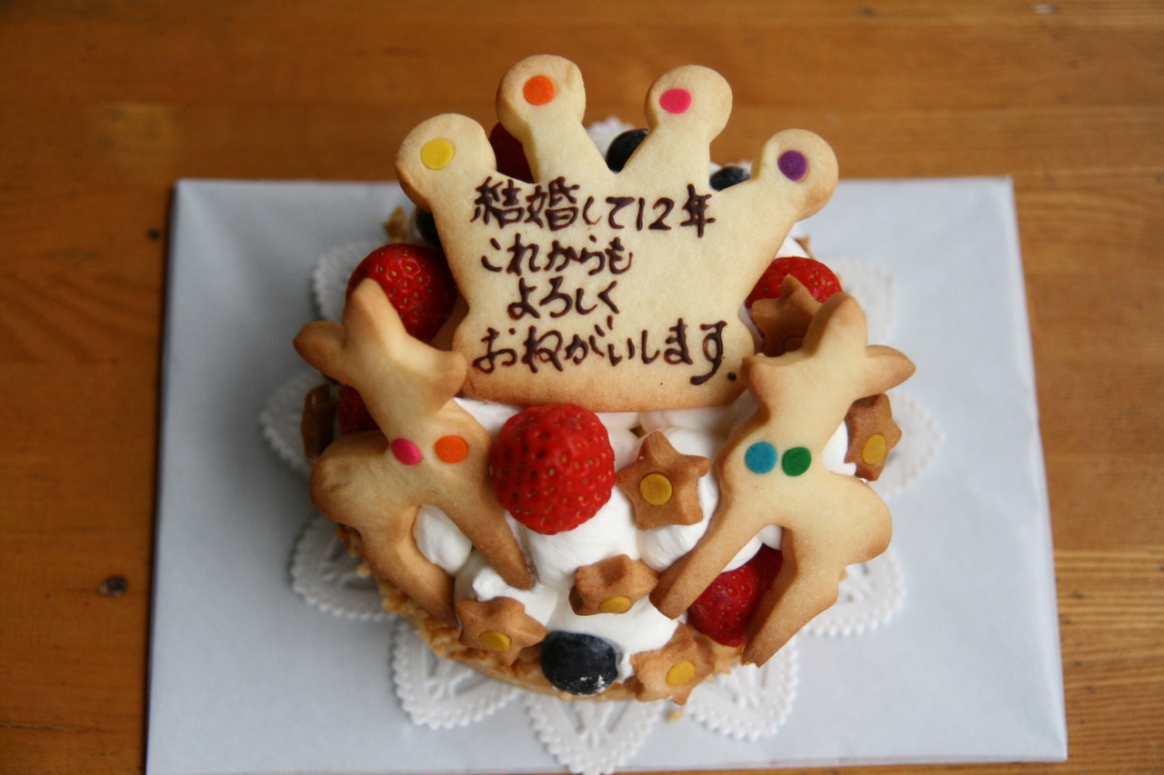 いつも家族みんなのケーキをありがとうございます。 今日は、奥様のケーキ。 12年を意味して、干支のクッキー。飾り用です。