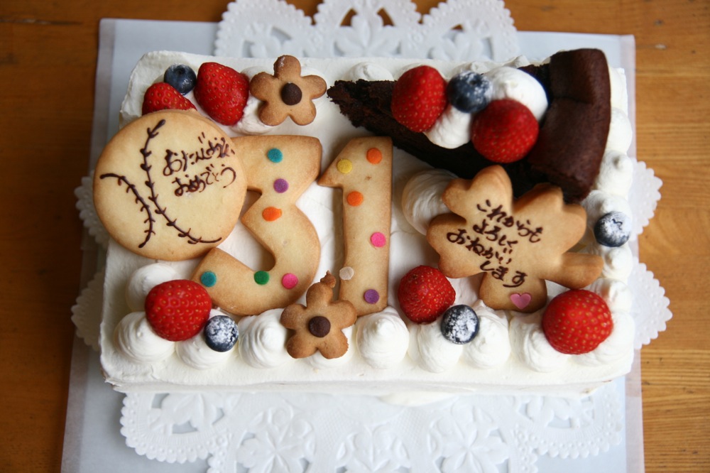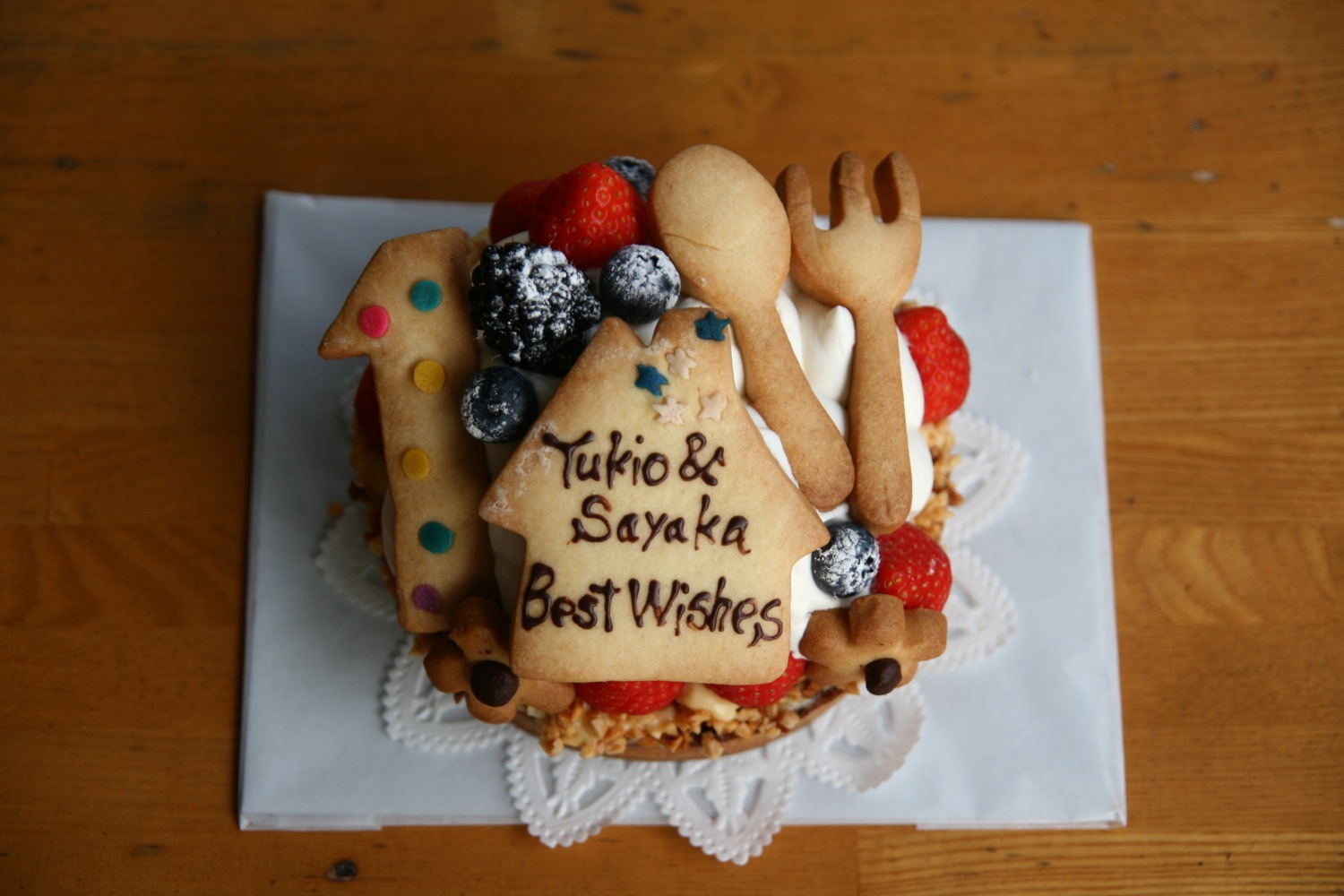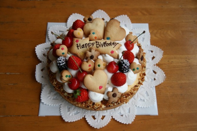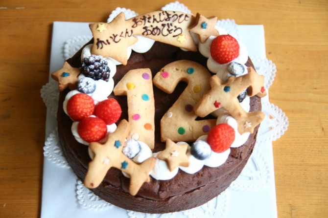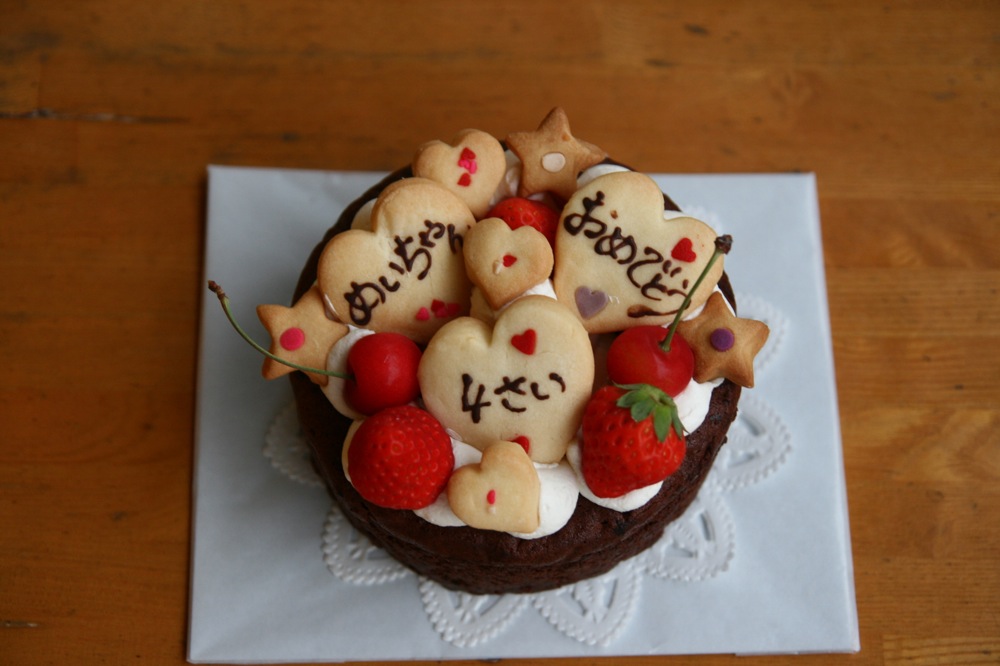 スポンジケーキにどうしてもチョコケーキが食べたいと、上にのせちゃいました。