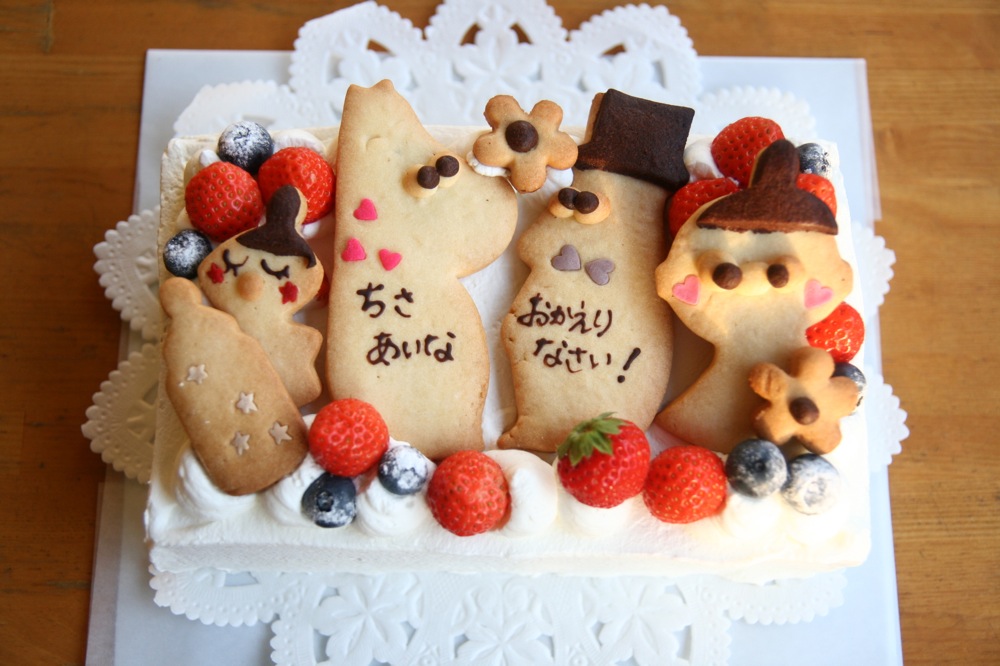 新しい家族がふえて、みんな揃ってケーキ。