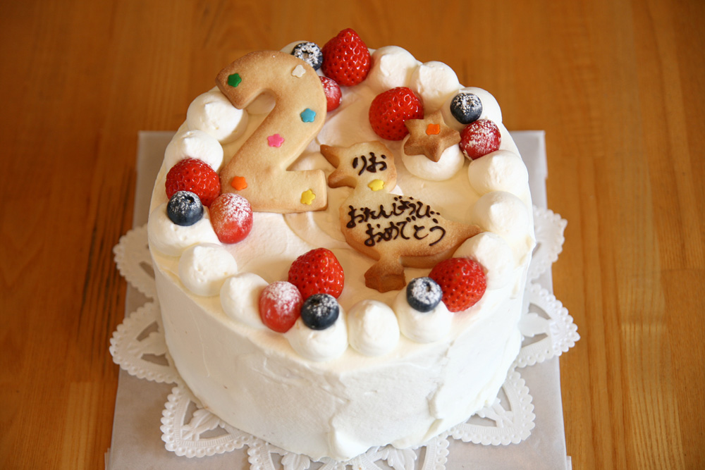2歳の娘さんにたくさんケーキを食べさせたいとのことで、お母さんのご希望で甘さ控えめのリクエストがあり 少し、お砂糖控えめでお作りしました。