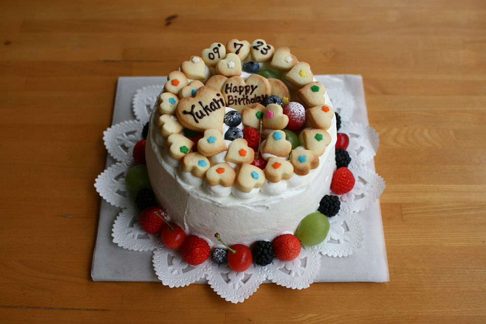 今日のバースデーケーキは、25歳のお誕生日とのことでハートを25個お客様のご希望でのせました。 愛情たっぷりのケーキになりました。