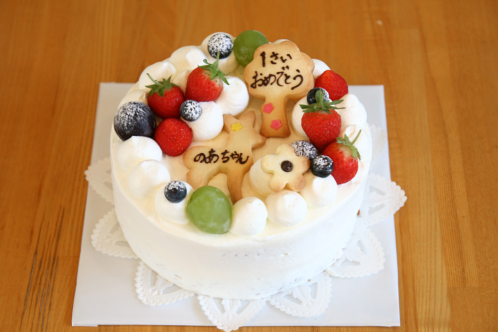 10ヶ月から歩き出した、のあちゃんの1歳のお誕生日ケーキです。
