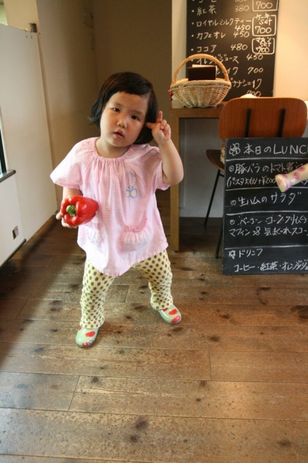 2013/7/8 子供たち なぜか、パプリカもってボーズする長女。 お姉ちゃんのまねして、次女もパプリカもってポーズ。 最近できるようになったピース。 3人目の弟くん。(2ヶ月) まだ、じっとしています。 Tweet