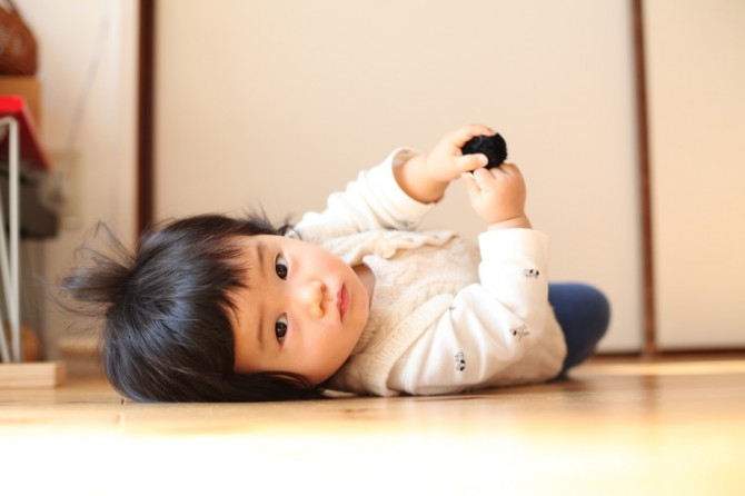 ここ、数日でつかまり立ちするようになって、目が離せません。