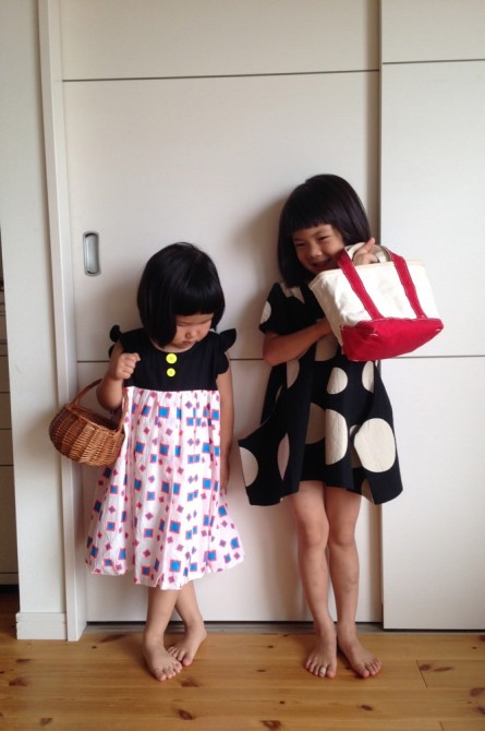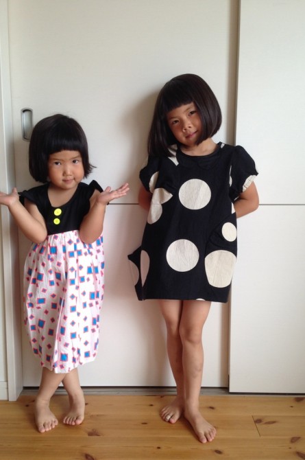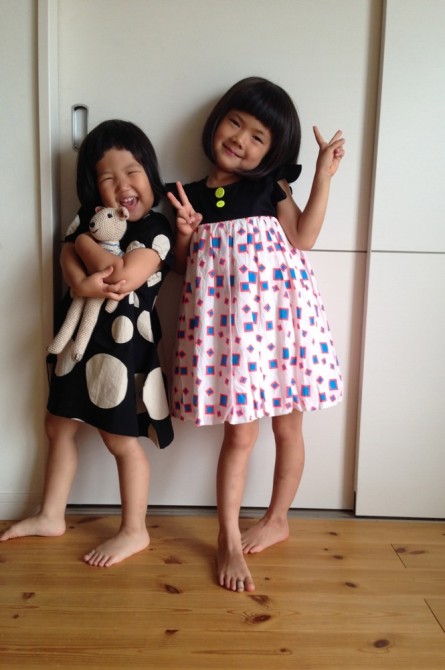先日PopUpShopで娘2人に買ったワンピースでファッションショー。