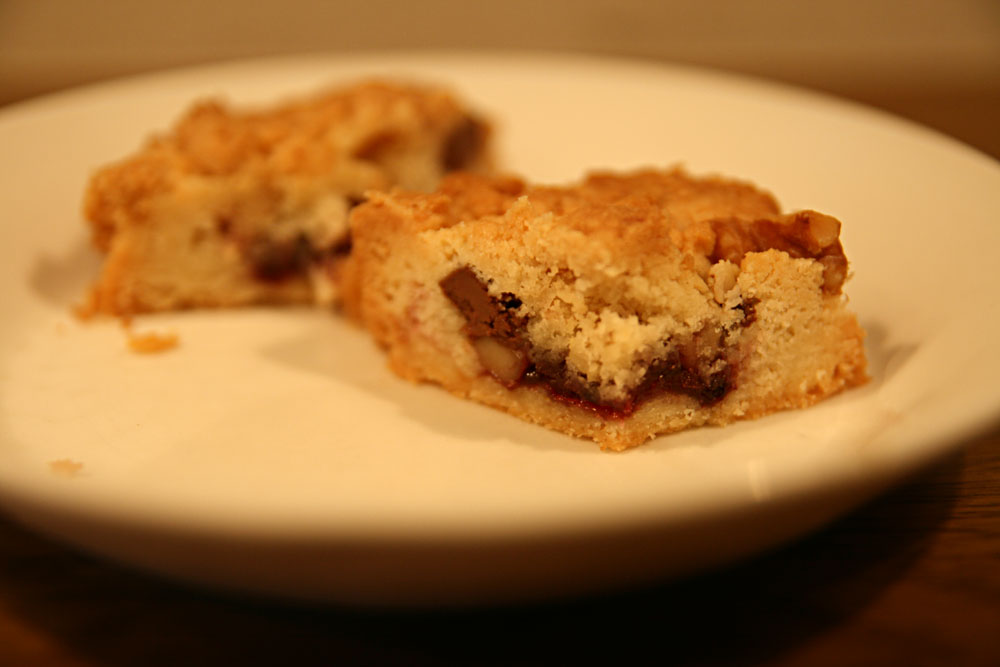 中には、自家製のジャムをいれて、ごろっとしたチョコとクルミが入っています。