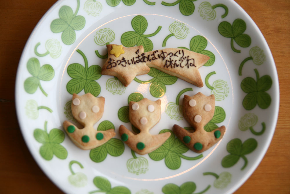 娘の大好きなおおきいばあちゃんが天国にいってしまいました。 なので、ばあちゃんの大好きなお菓子にメッセージを書いてお供えしました。