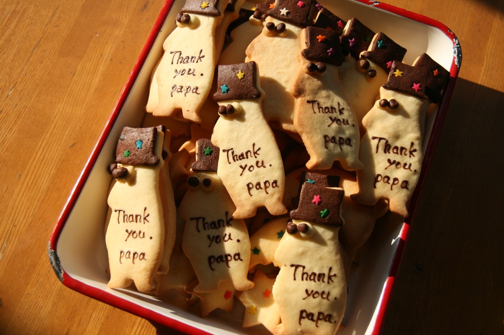 2014/6/12 父の日クッキー(明日から販売します) 父の日クッキーは、明日から販売します。 メッセージのクッキーと、お月様、星と ゴロンとチョコ入りフィナンシェの詰め合わせです。 お待ちしていますね。 Tweet