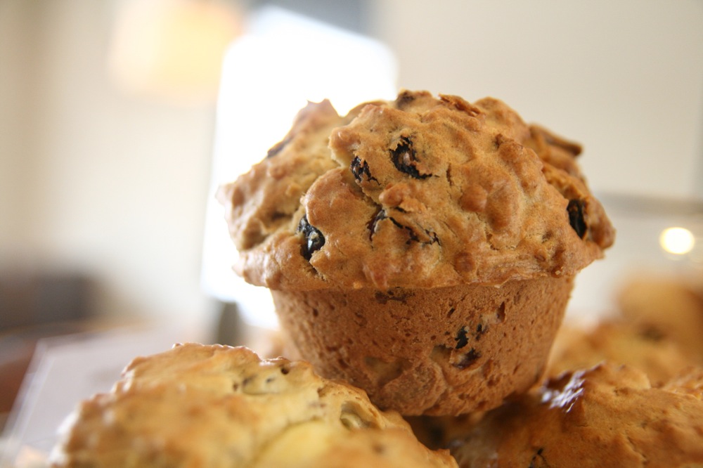 オートミール、ドライフルーツ、クリームチーズがはいったマフィン。