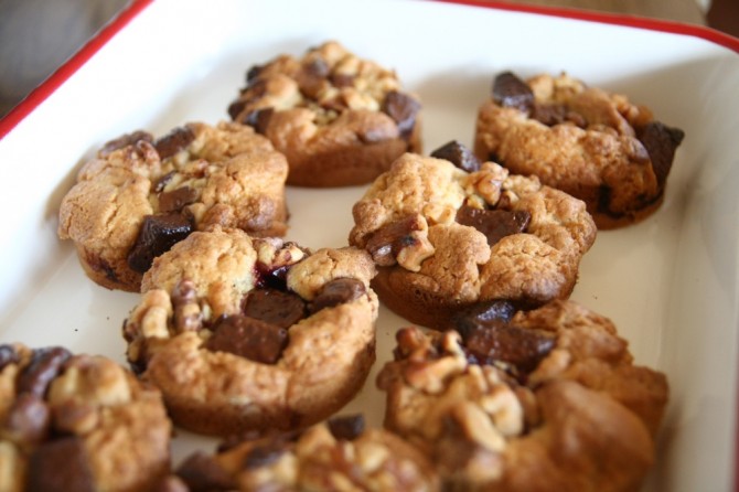 中に、ジャムがはいっていて上にはごろっとチョコとクルミがのっている。