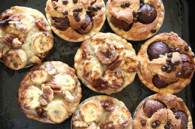 チョコ、イチゴ、サツマイモ、くり、カボチャなど日替わりで焼いています。