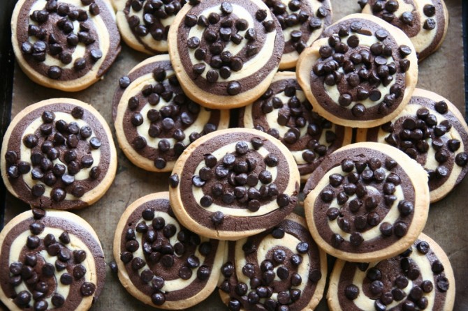 お店の名前のクッキーだけど、クッキーの味はココアとプレーンのマーブルの生地にチョコチップがのったクッキー。